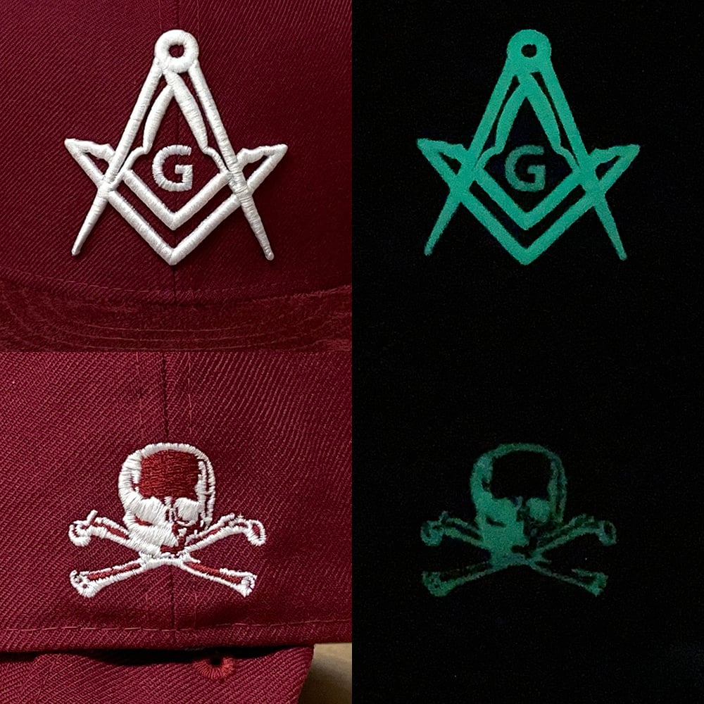 Crisp white Square & Compass with G is embroidered on the front. Special glow in the dark thread.