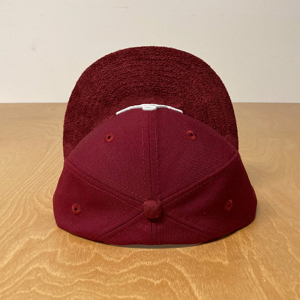 New Era flag embroidered in subdued matching Cardinal Red on the side.