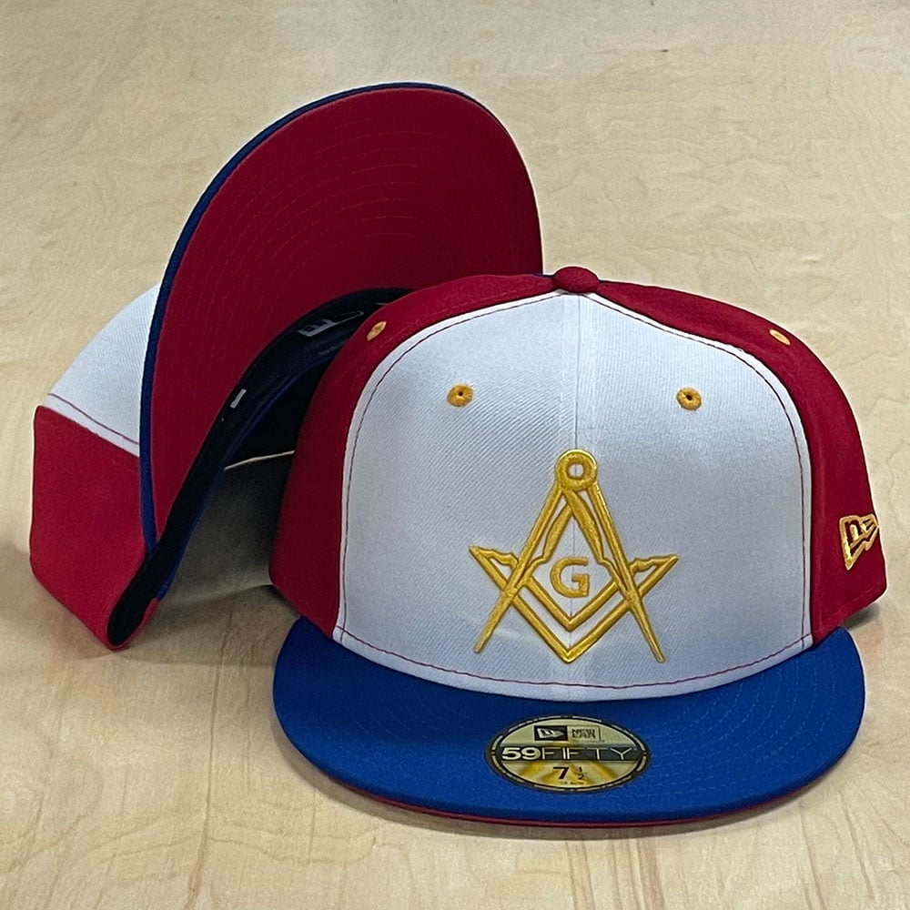 The Square and Compass is embroidered in a bold A-Gold embroidery, as are the eyelets and New Era flag. On the back is the Memento Mori skull n bones.